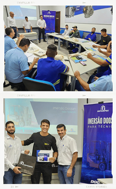 Disponibilizamos aos nossos clientes um contato direto de suporte via WhatsApp, a entrega técnica demonstrando como fazer o uso das empilhadeiras e transpaleteiras Doosan, e além disso oferecemos o treinamento Imersão Doosan, com conteúdo técnico e comercial dos equipamentos com tecnologia de íons de lítio.
